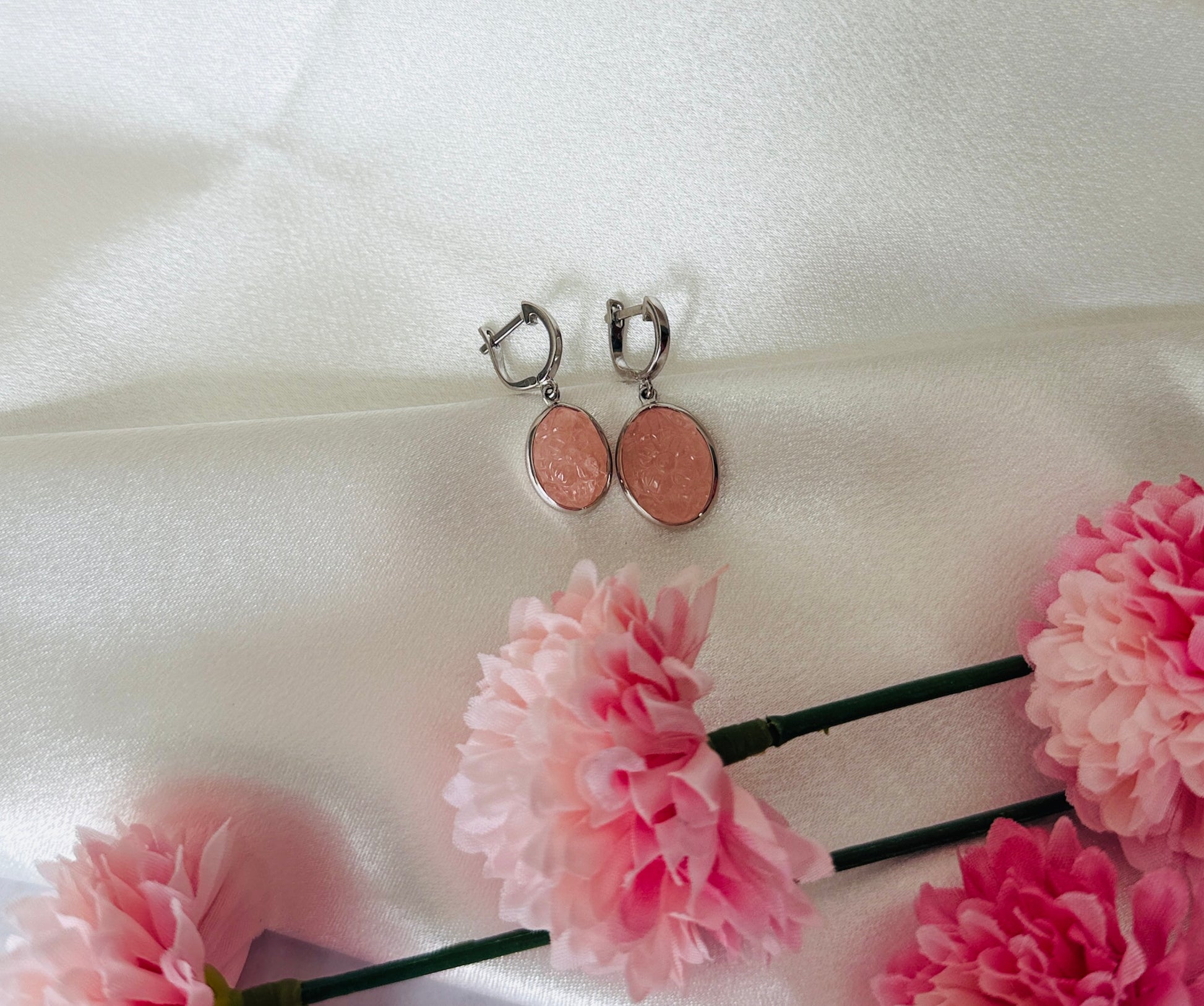 Softly romantic and effortlessly elegant, these morganite drop earrings are crafted in sterling silver and feature delicate blush-hued gemstones that shimmer with subtle grace. The gentle sparkle of the morganite, paired with the cool sheen of silver, creates a timeless design perfect for both everyday elegance and special moments.