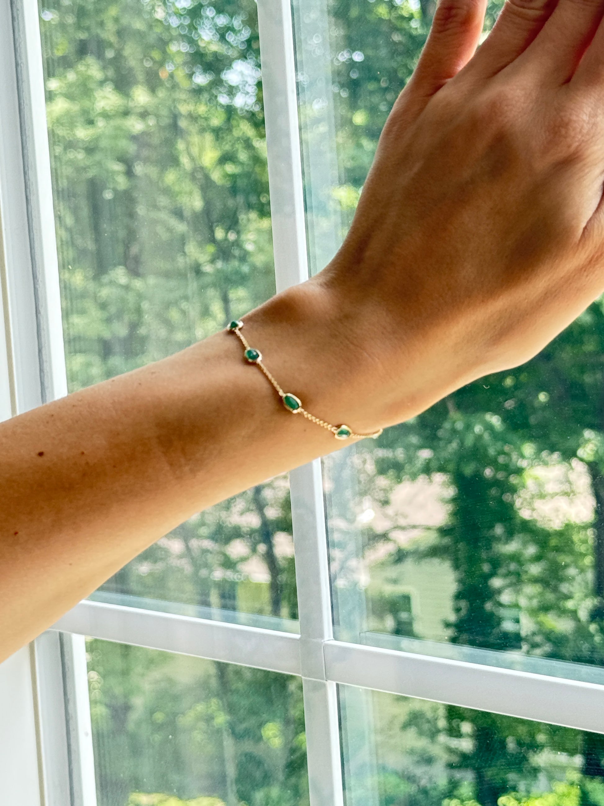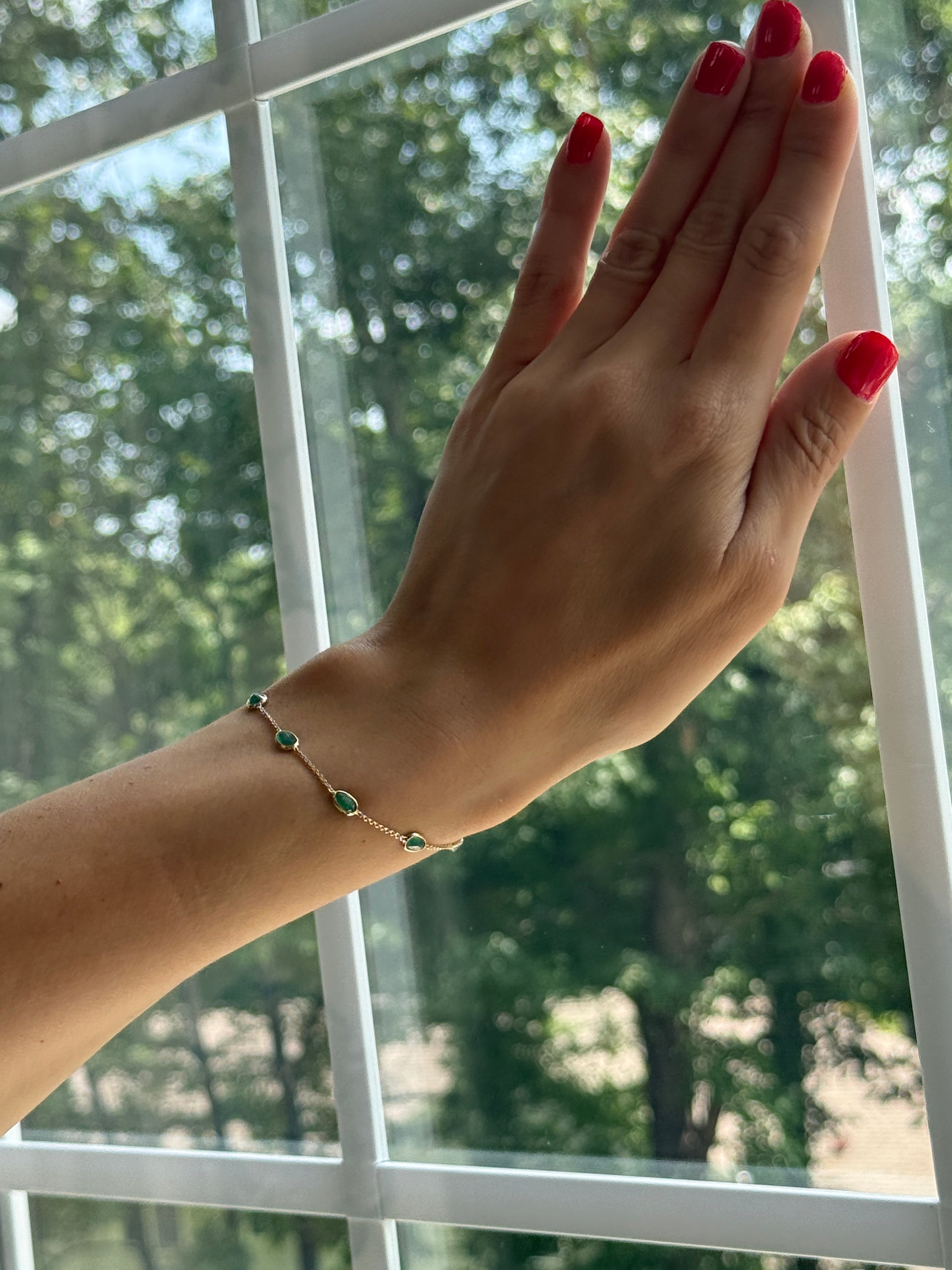 Celebrate the subtle elegance of the Emerald Spark (large) Bracelet, a radiant expression of love, beauty, and timeless charm.