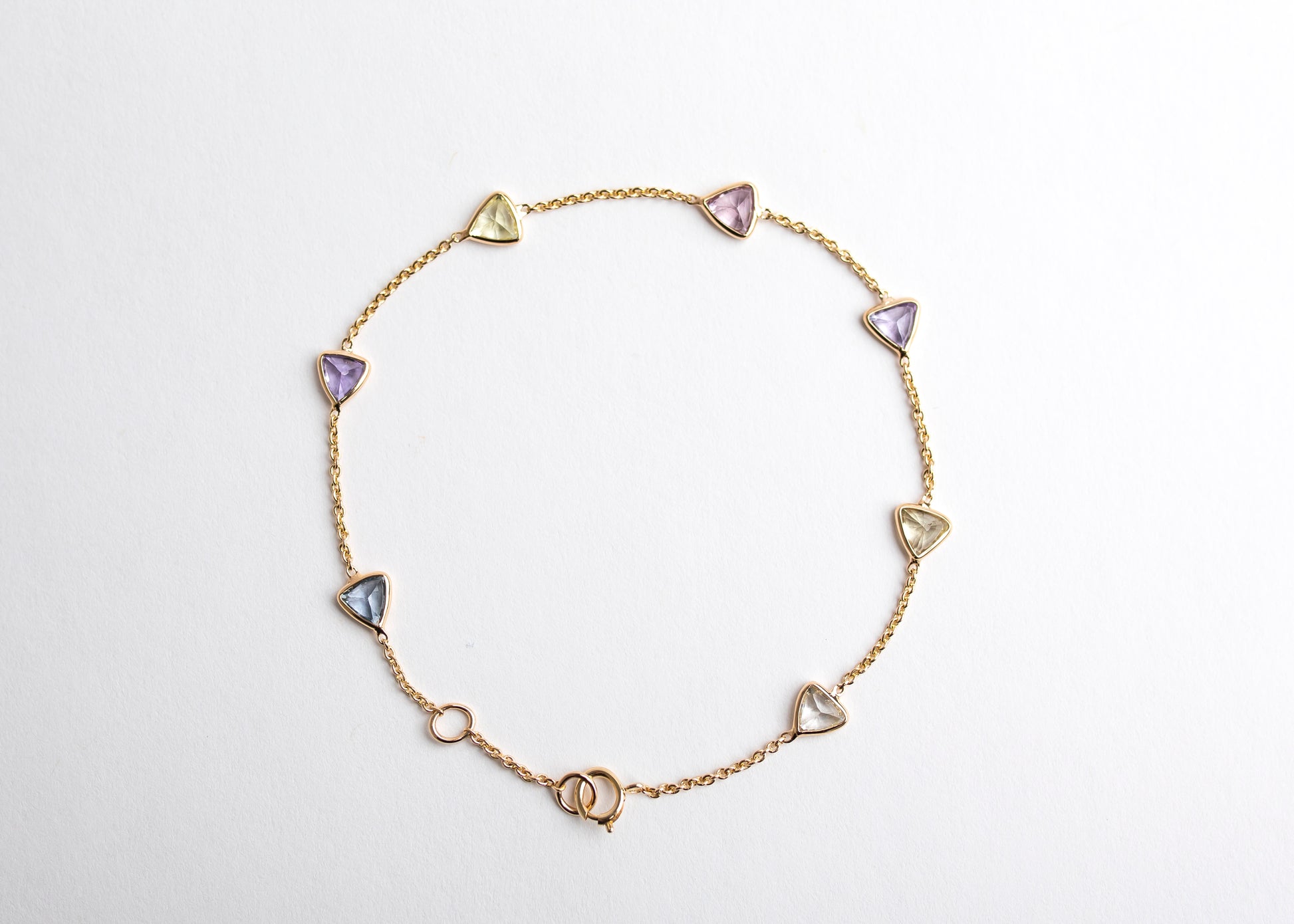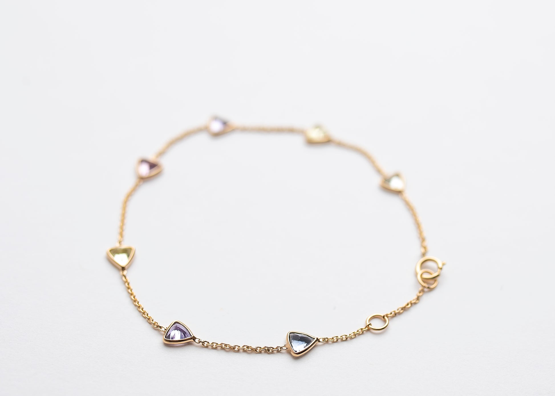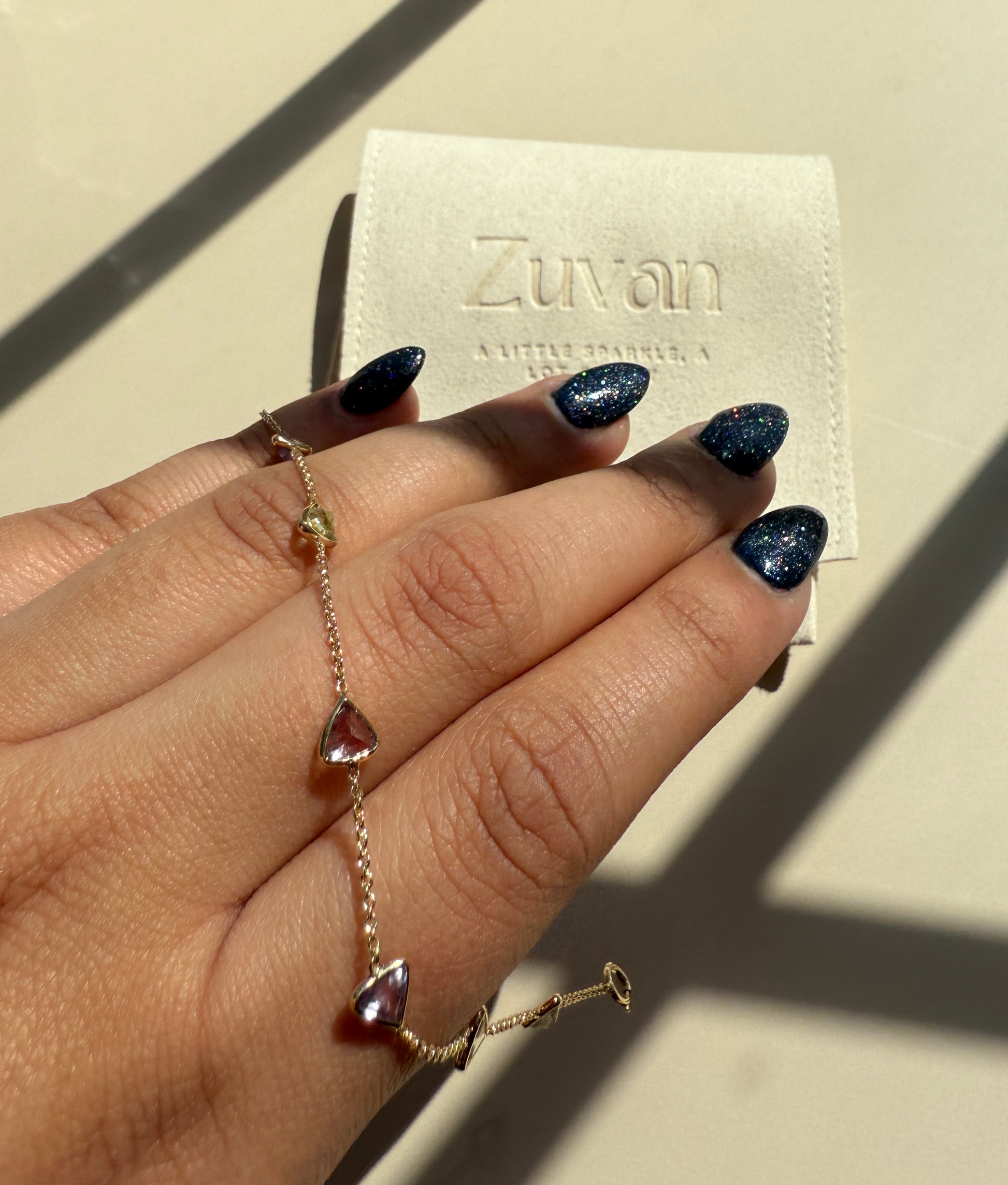 Infuse your style with a burst of vibrant joy through the Joyful Hues Bracelet. Adorned with an array of ethically sourced sapphire gemstones, this exquisite piece showcases a stunning spectrum of colors that harmonize beautifully with its timeless 14k gold setting. Each gemstone is meticulously hand-selected to ensure unparalleled brilliance and charm.