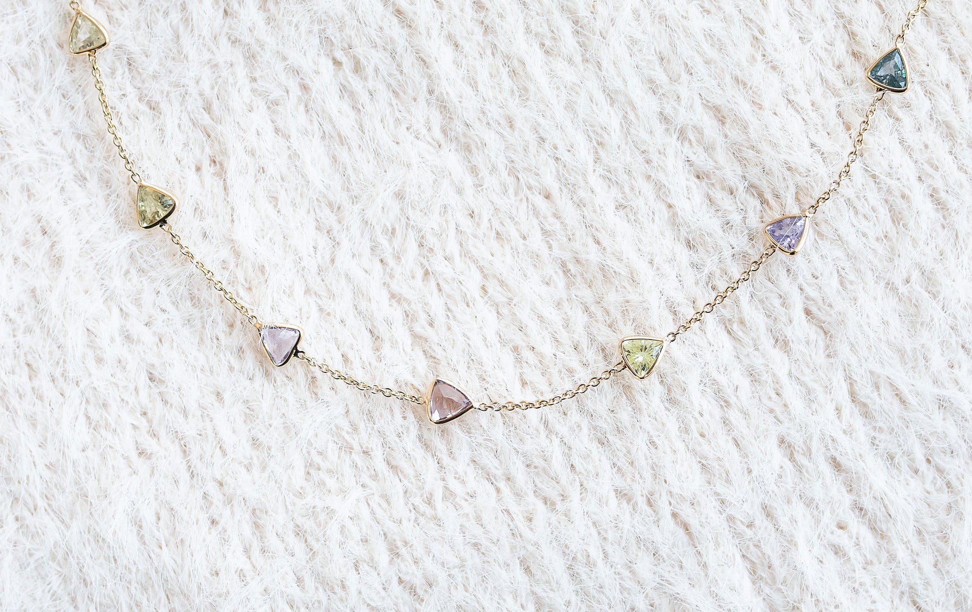 - Showcasing seven natural, multi-colored sapphires responsibly sourced for a touch of conscious luxury.