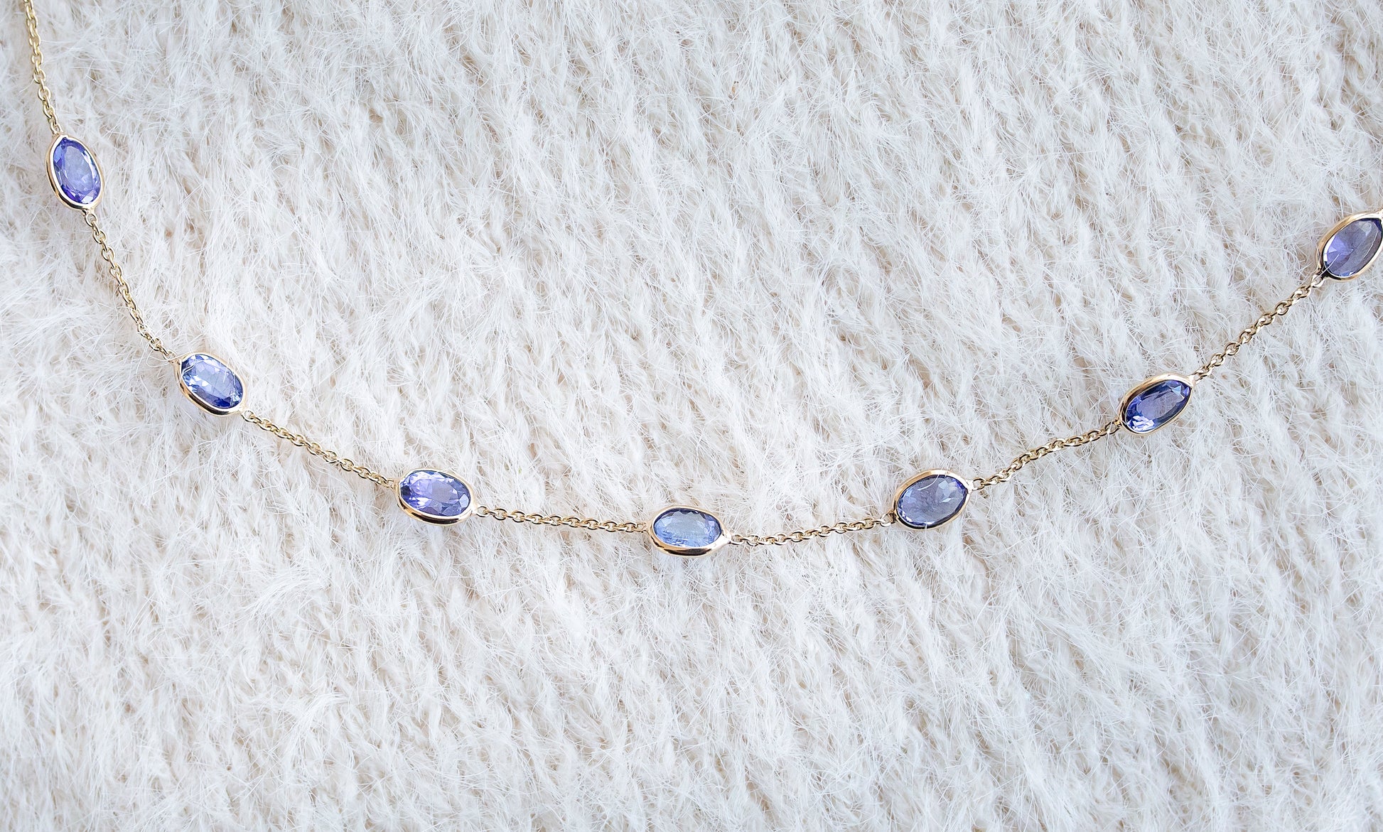 - Showcases seven ethically sourced, natural tanzanite gemstones.