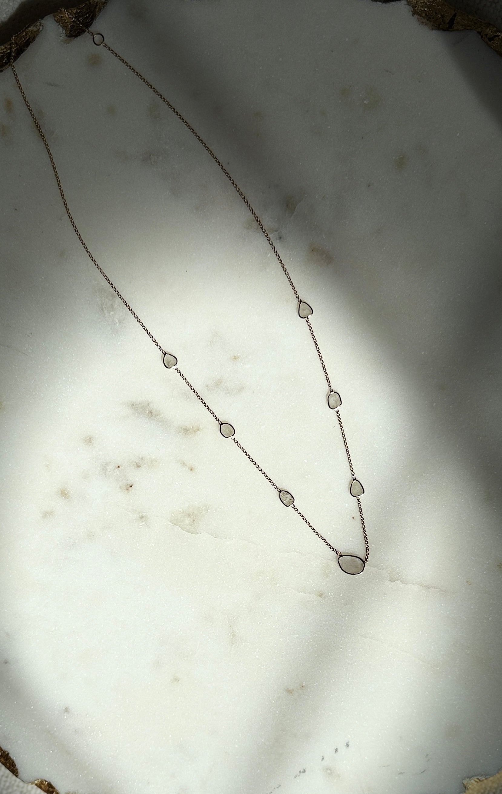 Embrace the serene beauty of the Moonlight Pendant Necklace, a piece inspired by the soft glow of the night sky. This pendant features a luminous raw uncut diamonds that captures light like the moon’s reflection on water, radiating a calm and elegant shimmer. Suspended on a delicate chain, the Moonlight Pendant Necklace is designed to be both understated and captivating, making it perfect for layering or as a statement on its own. Ideal for those who find beauty in simplicity, this necklace brings a touch of lunar magic to every look, embodying grace and tranquility.
